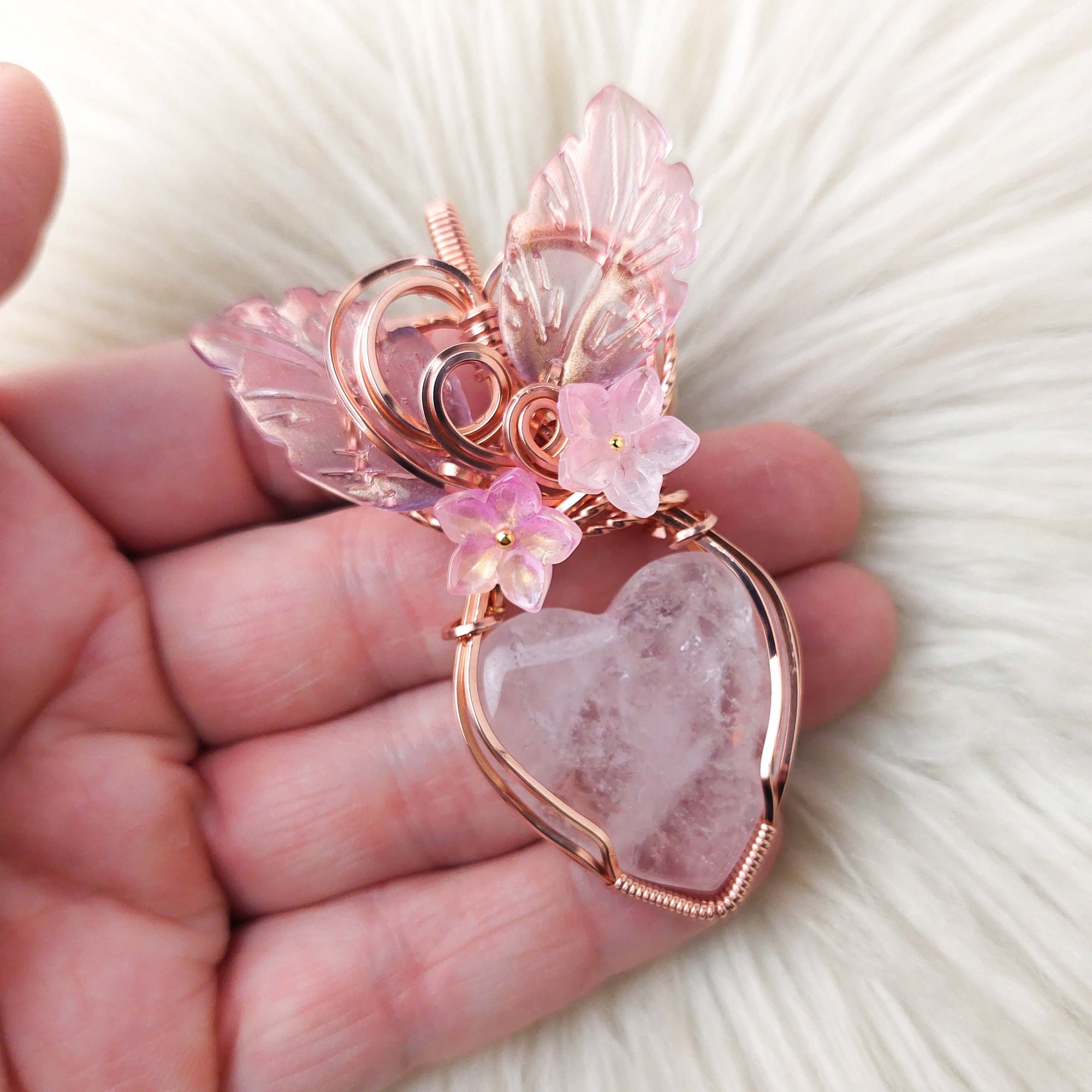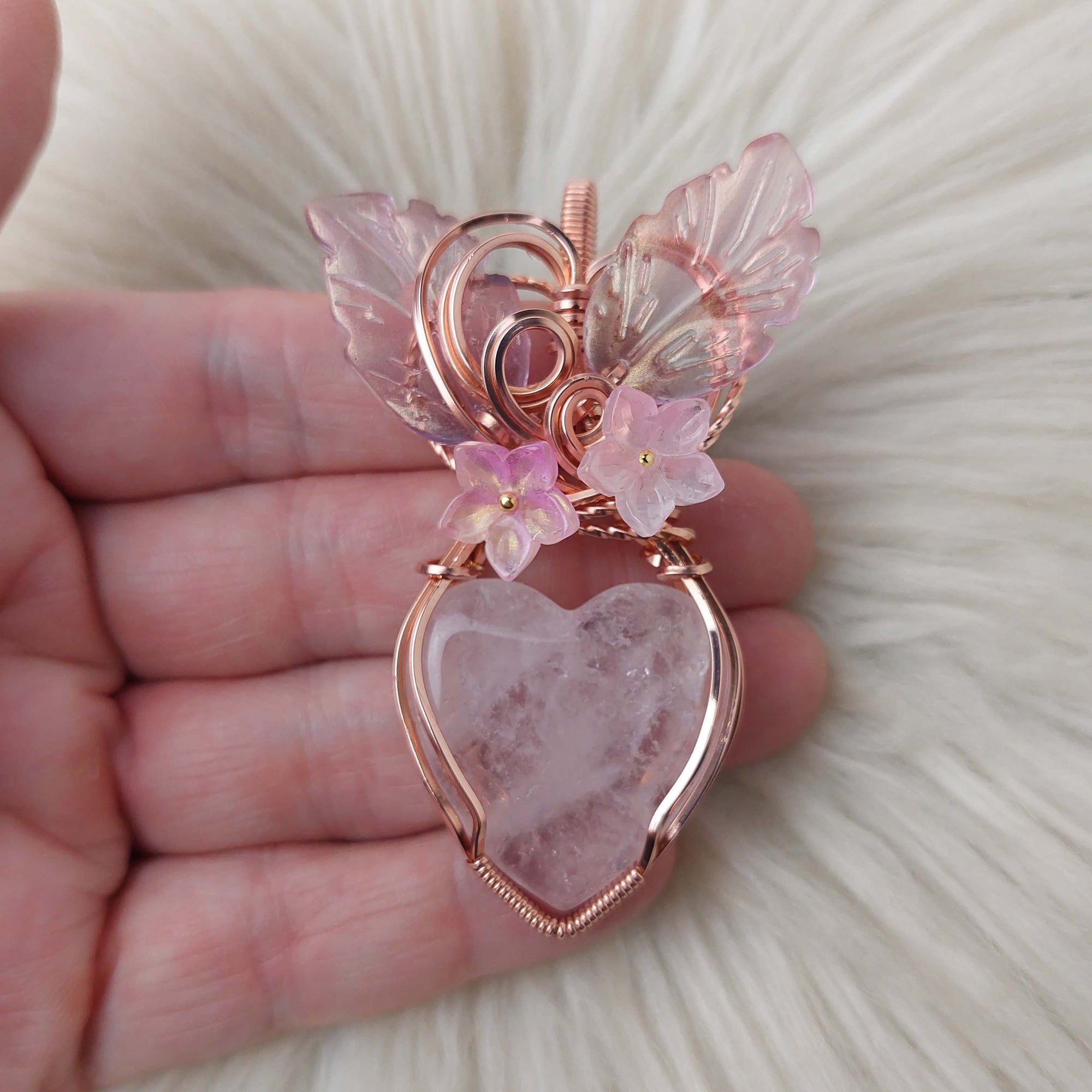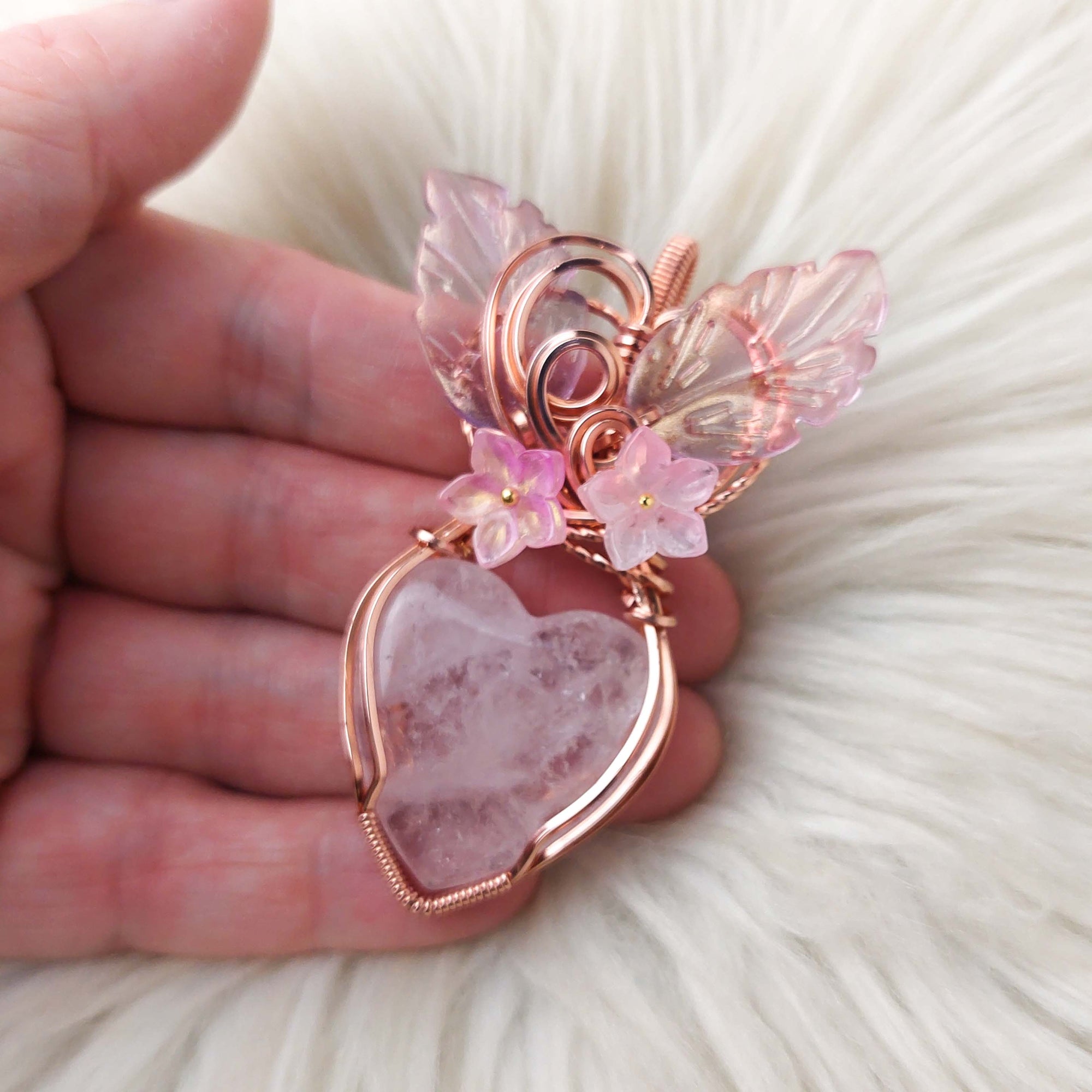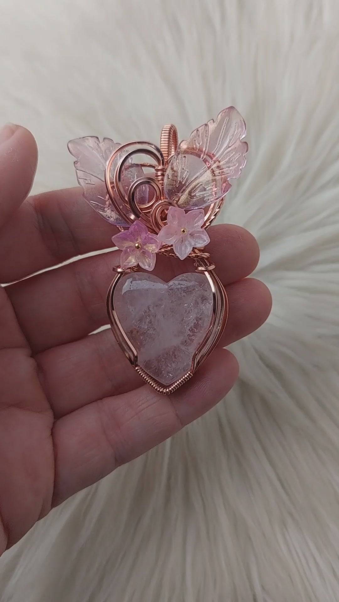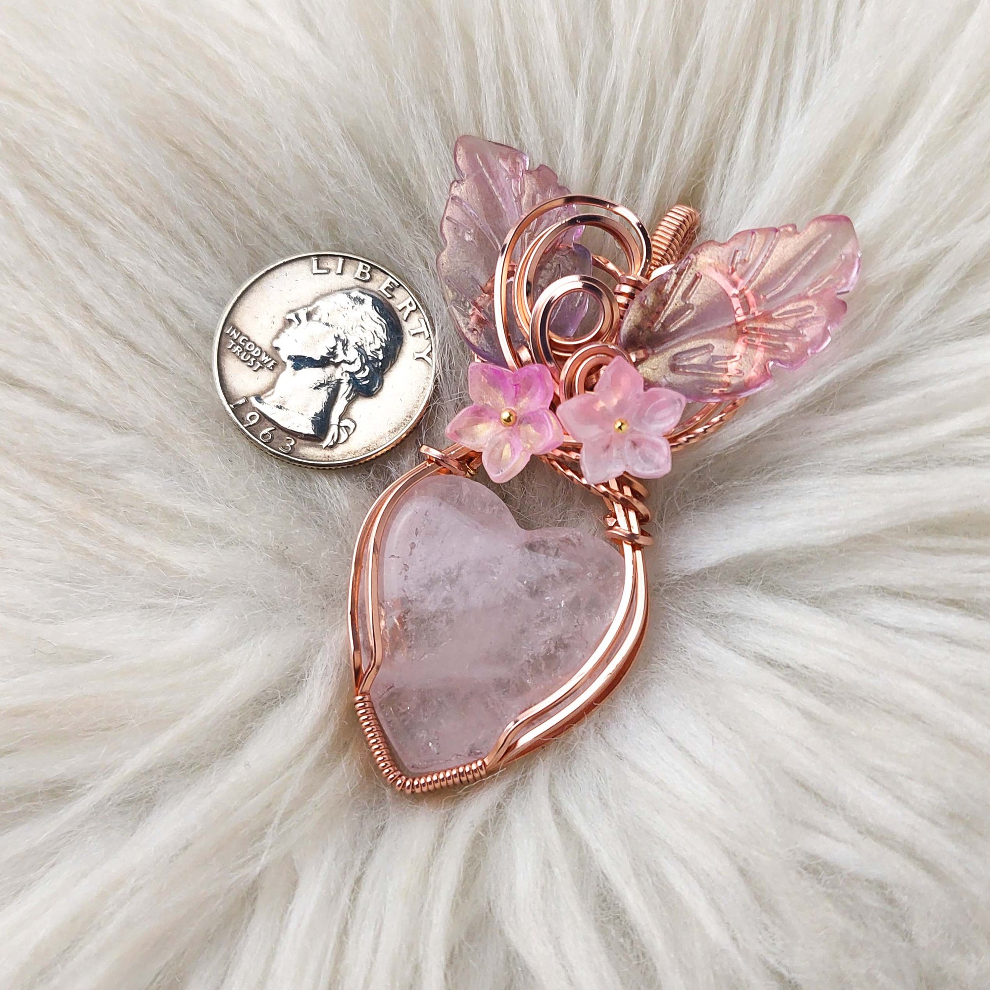 This pendant turned out absolutely beautiful. The stone is Rose Quartz. The leaf is glass and the flowers are glass. It is set in Copper. It's only been polished. This stone was from Blizzards Rocks.