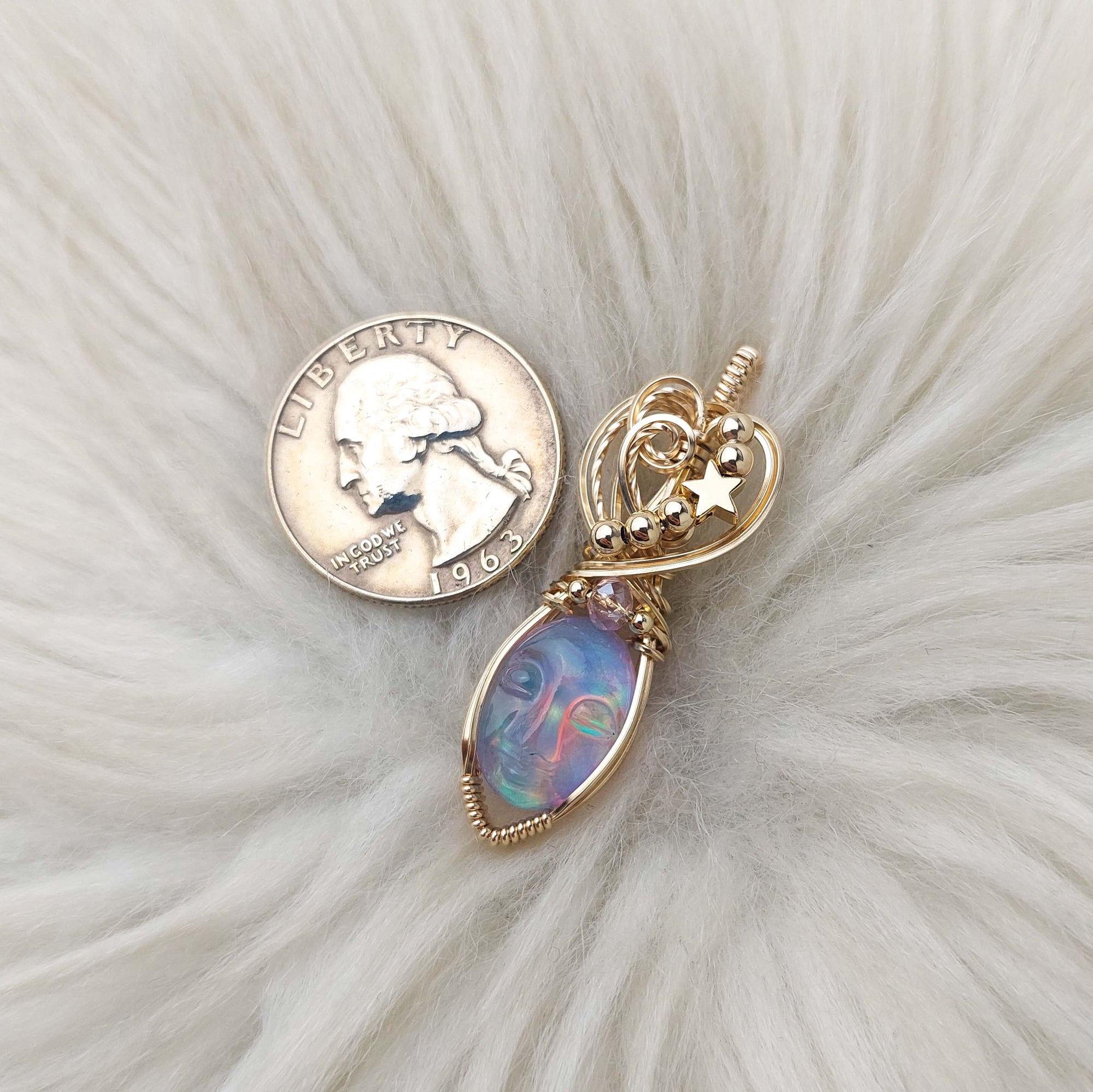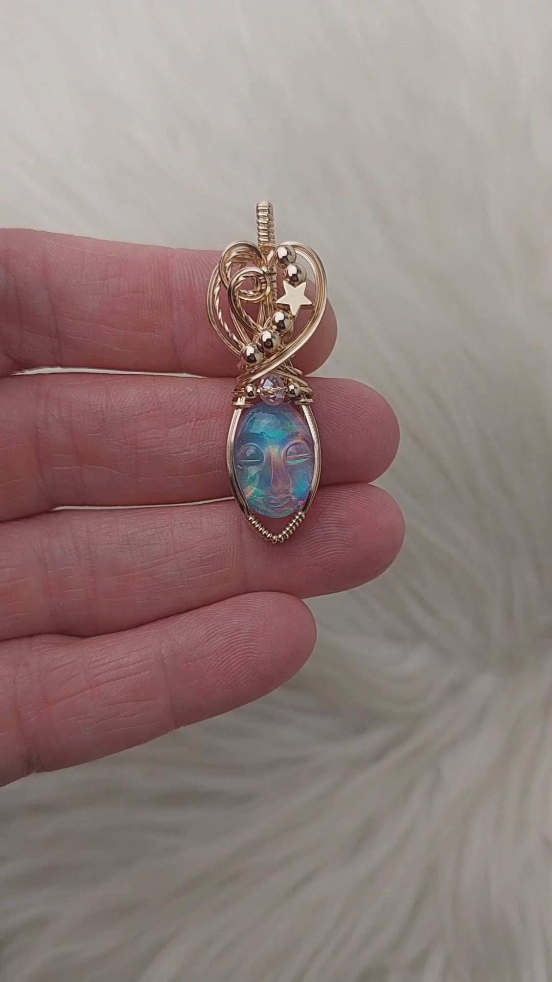 This pendant is absolutely stunning. The stone is an Aurora Opal doublet. It's set in 14k Goldfilled wire. The beads are 14k Goldfilled aswell.