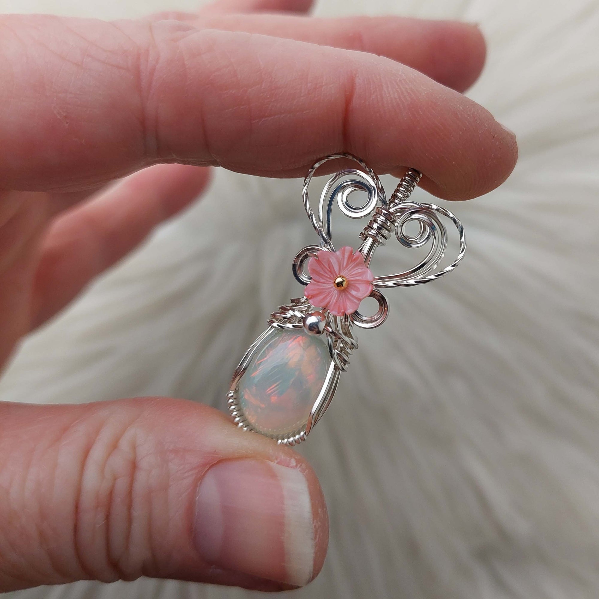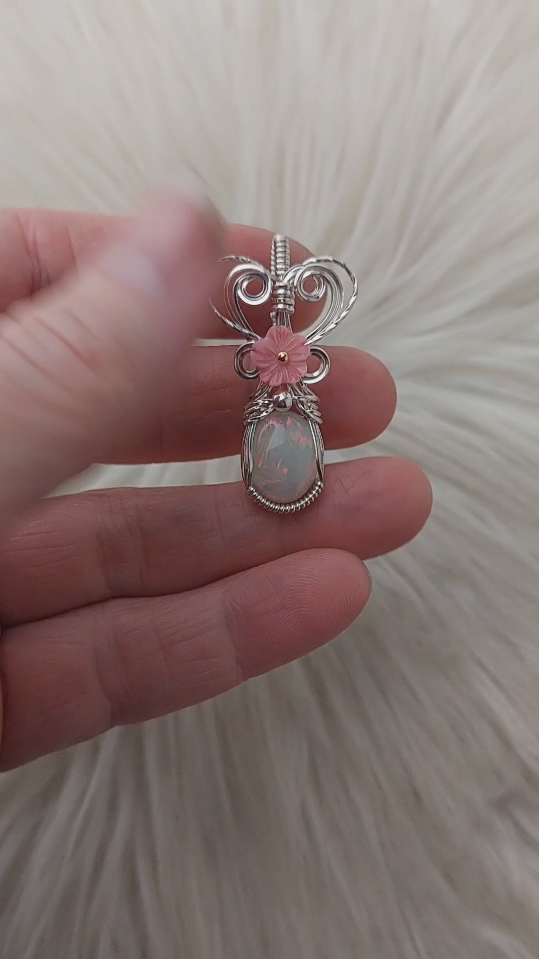 This pendant turned out really beautiful. The stone is a very pretty 3.5ct Pink Ethiopian Opal. It's set in solid Sterling Silver. It's only been polished.