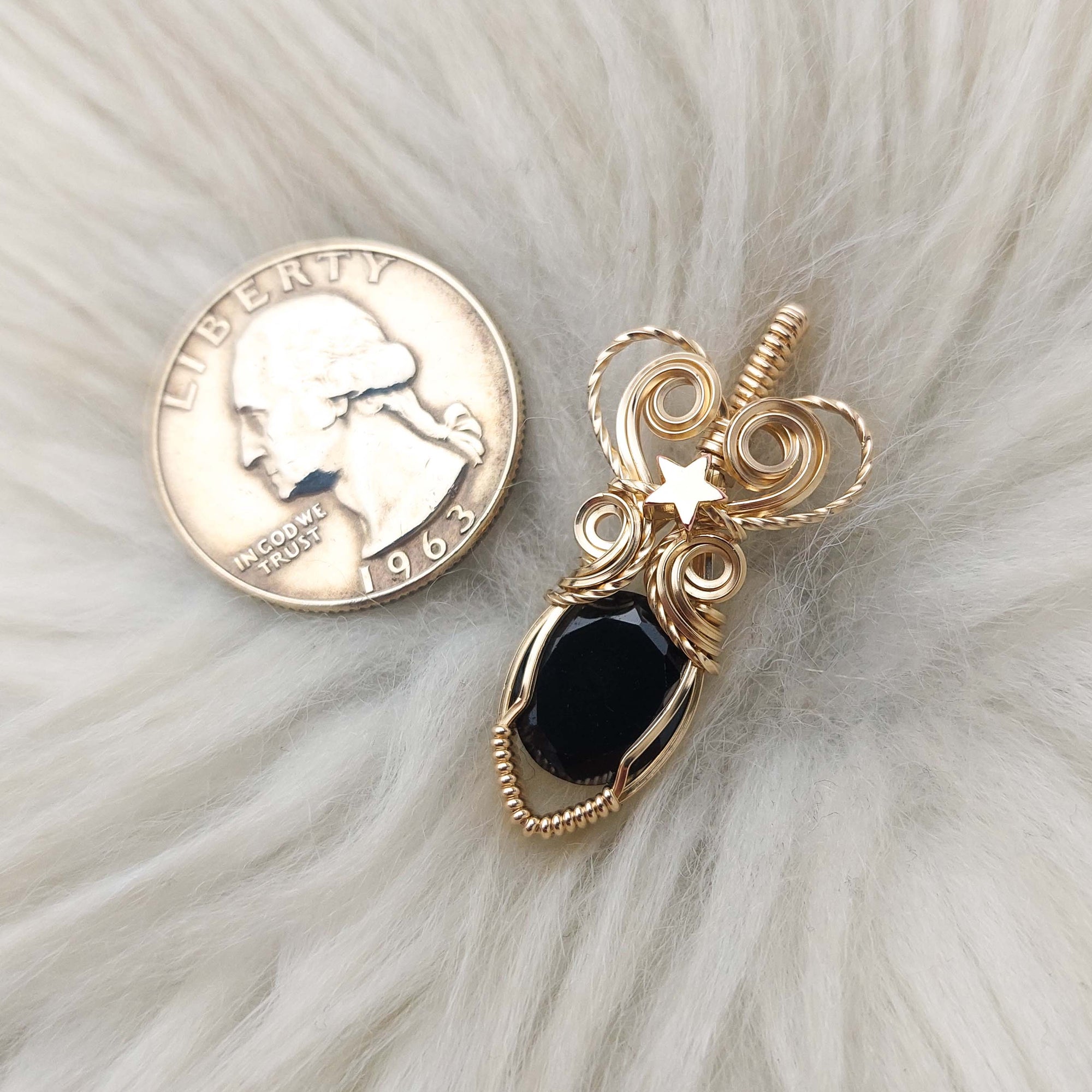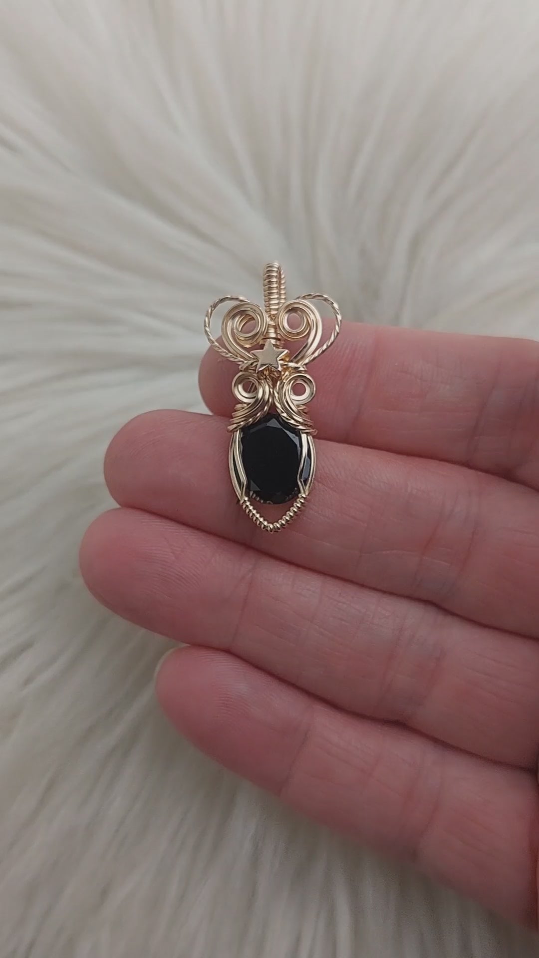 This pendant turned out really beautiful. The stone is a very pretty faceted Black Onyx. It's set in high quality 14k Goldfill wire. The star is 14k gold filled. It's only been polished.
