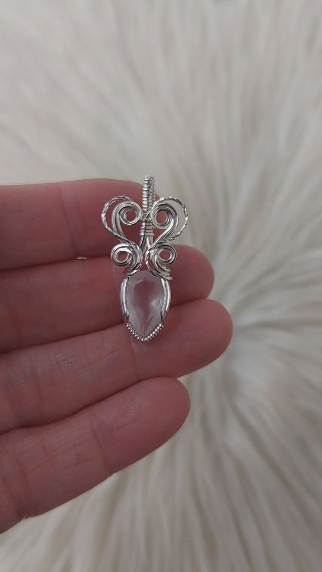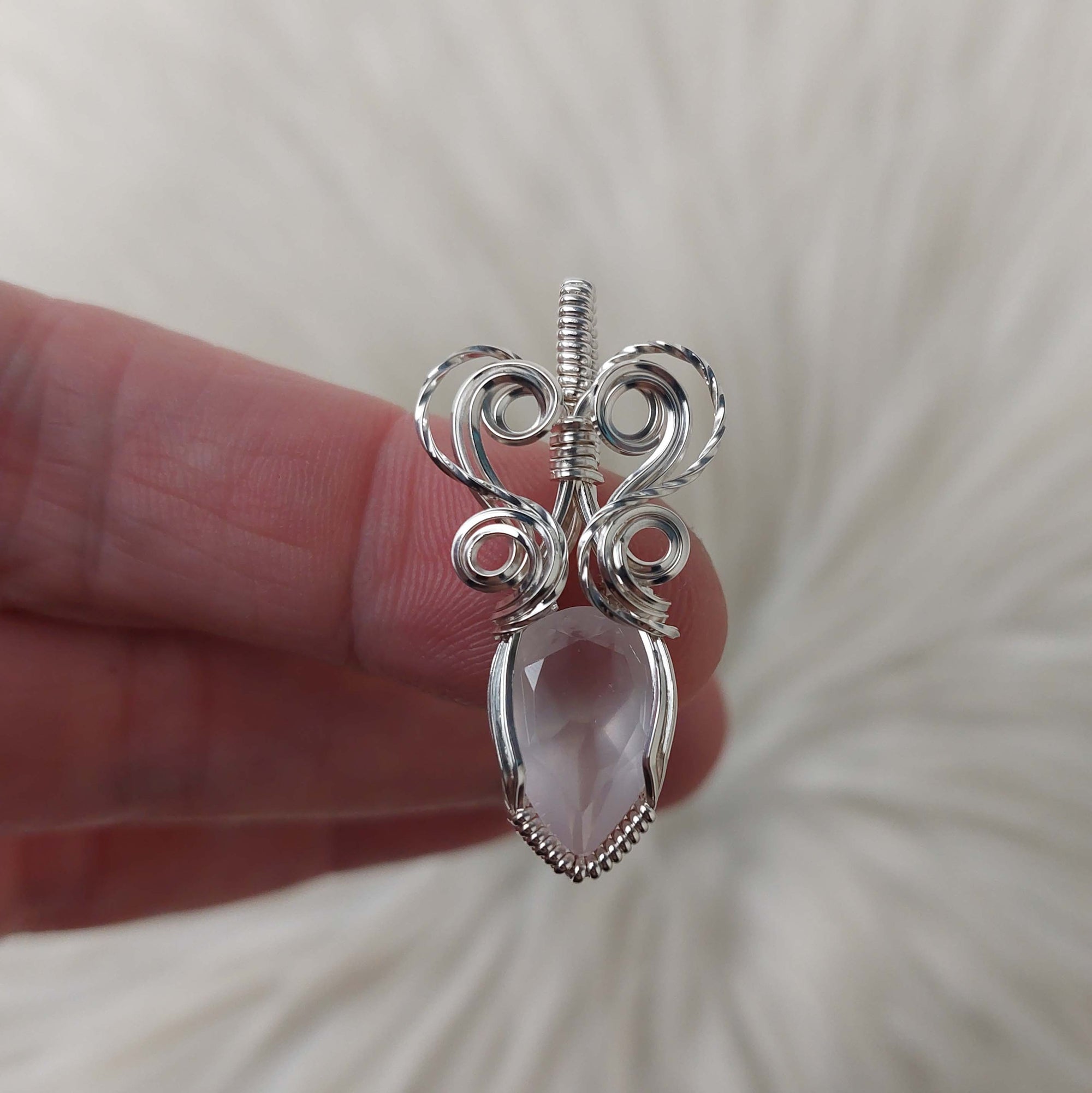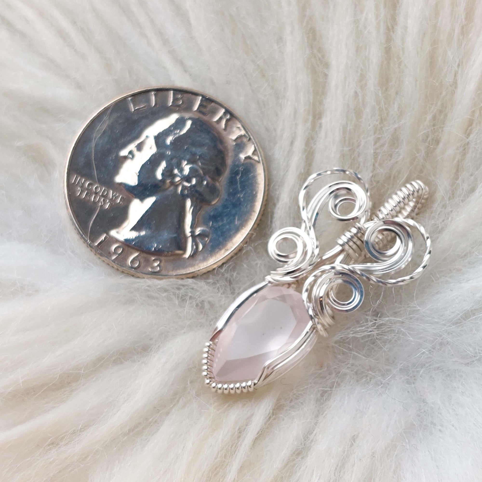 This pendant turned out really beautiful. The stone is a very pretty faceted Rose Quartz. It's set in solid Sterling Silver. It's only been polished.