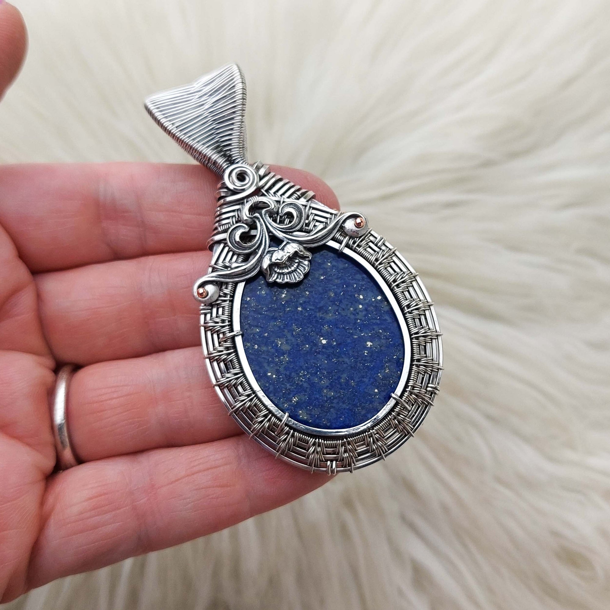 Beautiful pendant! I love the wire wrap contrasting colors and the flash quality of the stone. Can't wait to wear it when I find a matching necklace strong enough to hold up the weight of it.